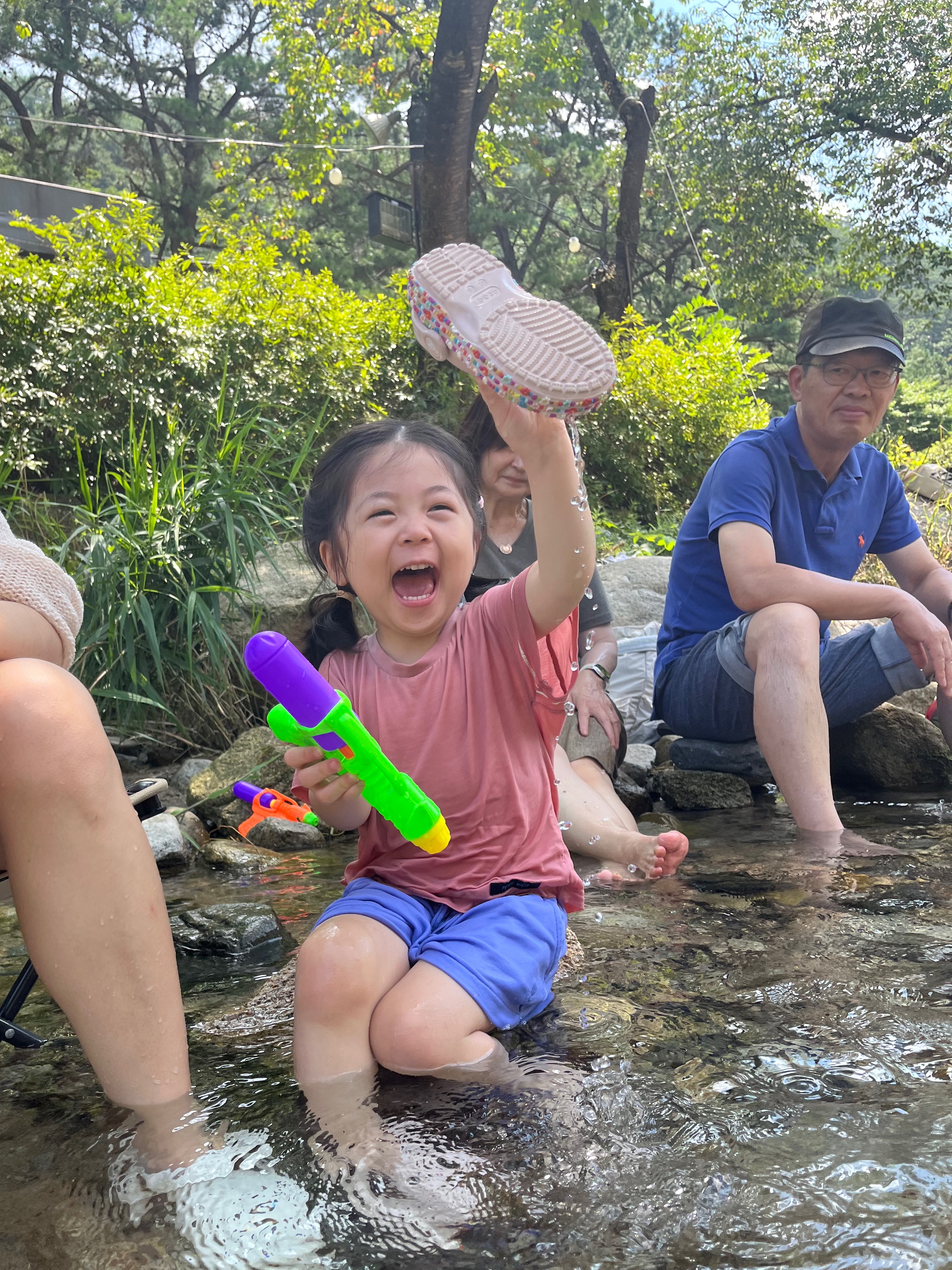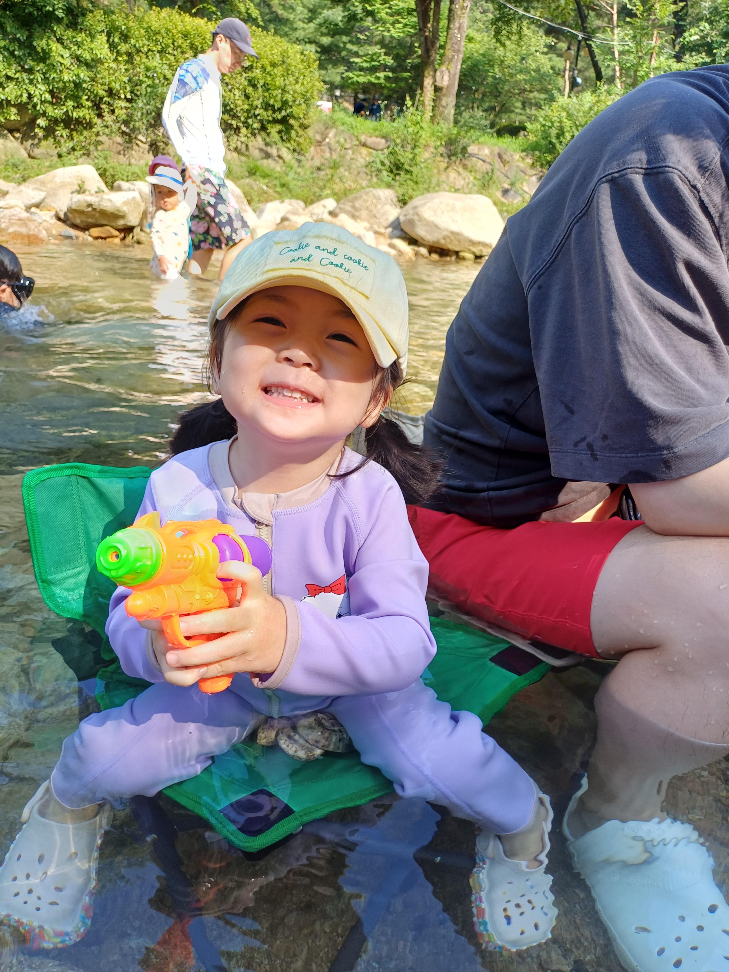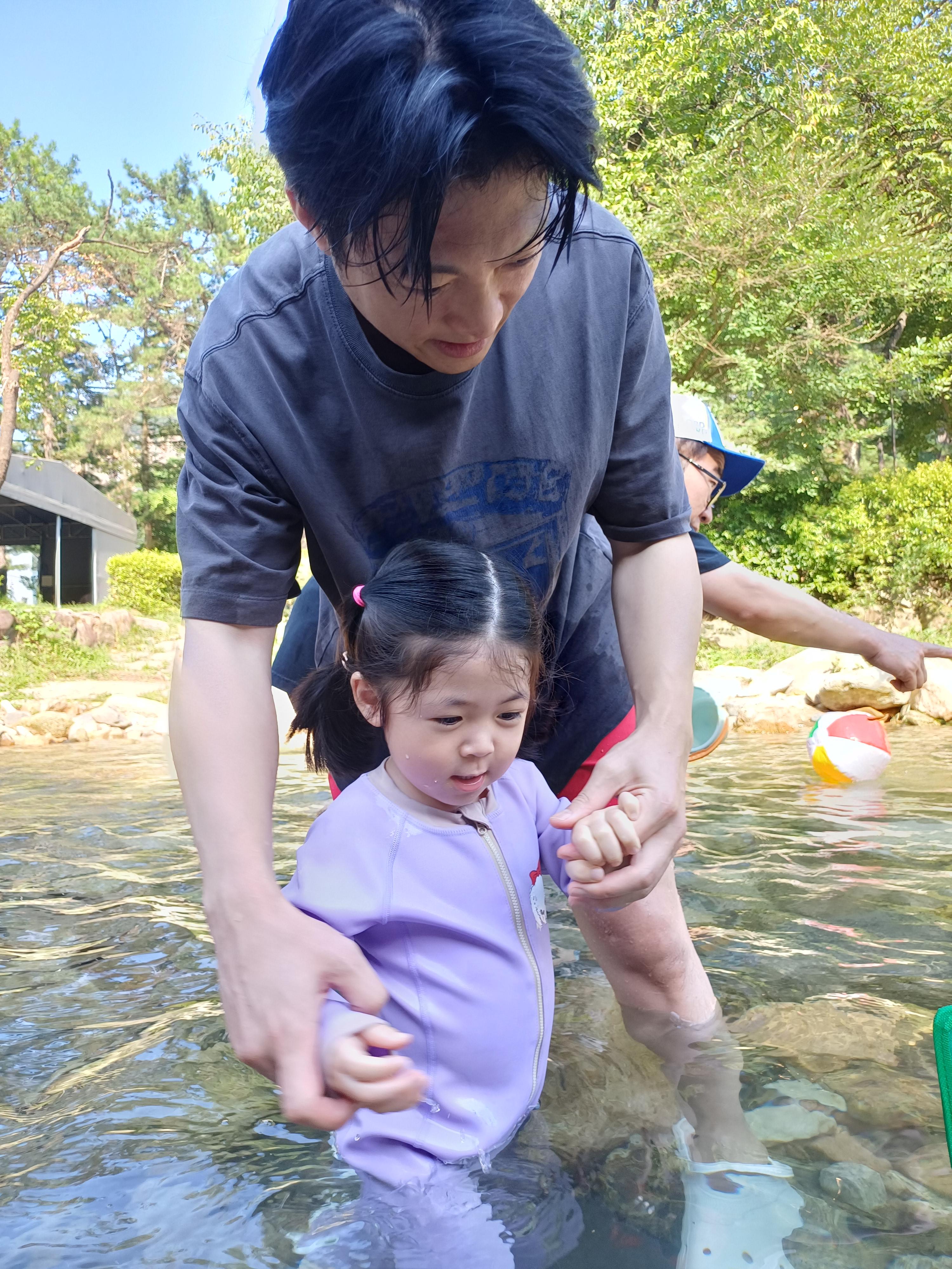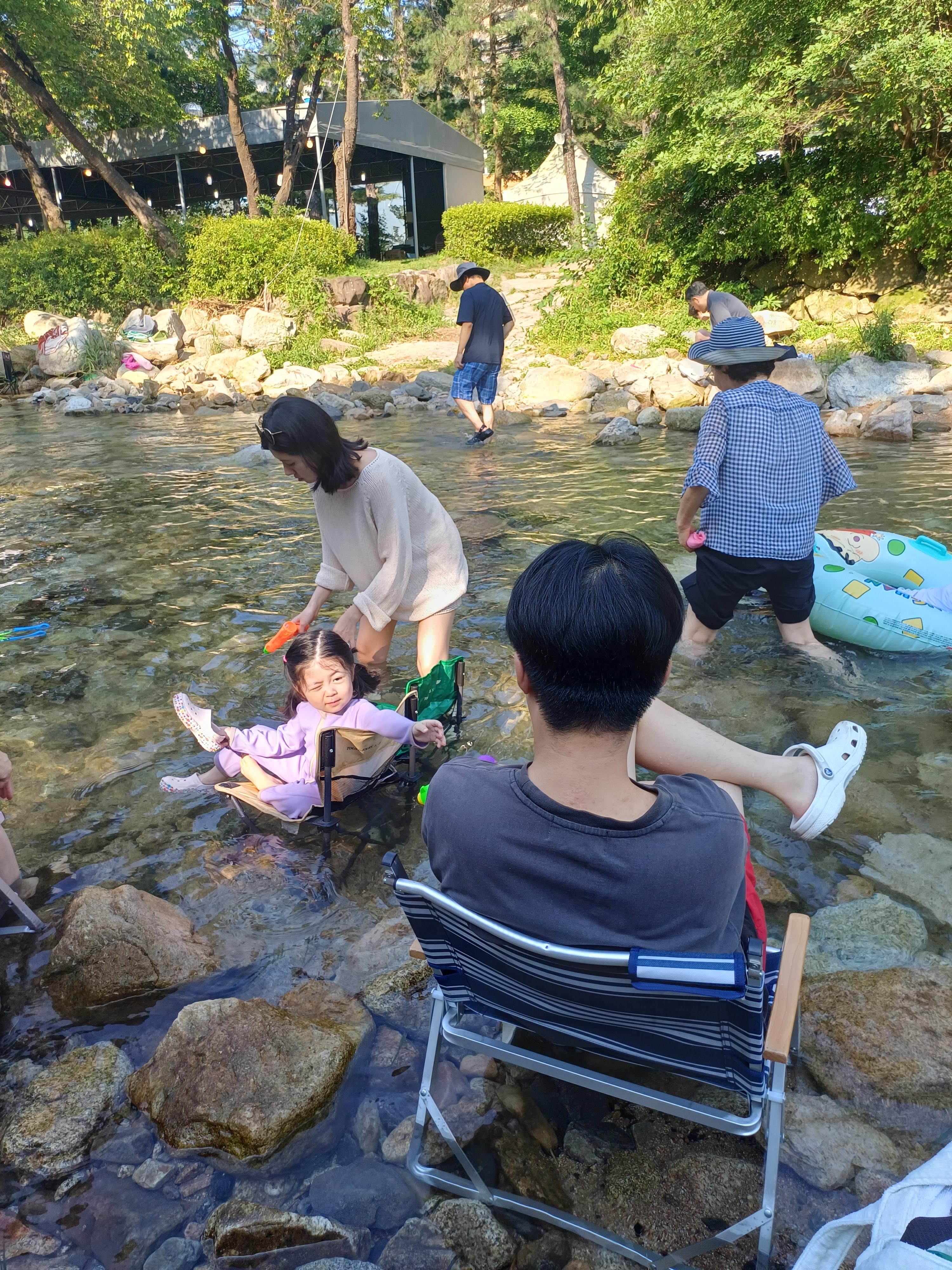 포천 산정호수 계곡에서 차가운 개울물에 발을 담그고 손녀와 물놀이는 즐기다 보니